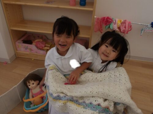 おままごとコーナーでは二人で入れたー❤️と嬉しそうにお風呂ごっこしたり、