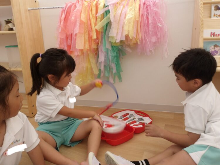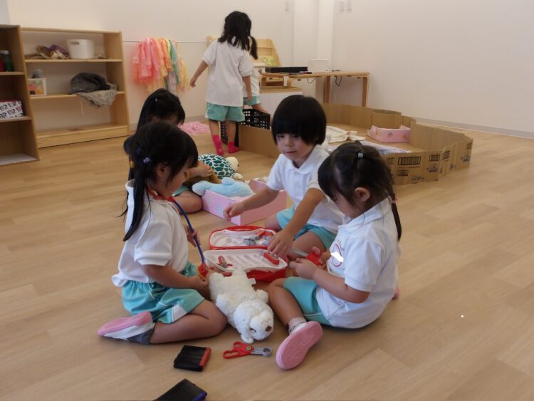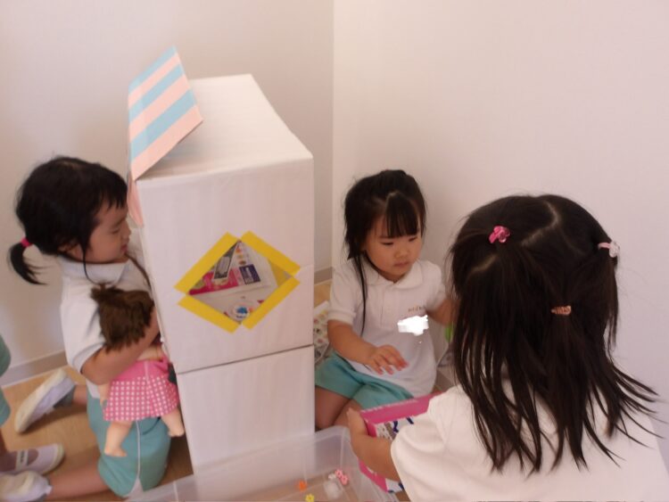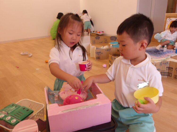 その後は園庭エリアで、金魚すくいにジュース屋さんごっこ等を楽しんだ後は、大急ぎで着替えていつものおままごとエリアでお店屋さんごっこ🍨に家族ごっこ👶ドクターごっこ🧑⚕️時間いっぱいまで遊び尽くしました♪