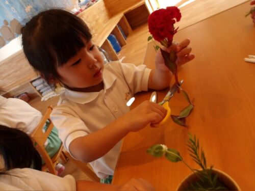 初めて自分のハサミを使ってお花の好きな長さに切ってみました!