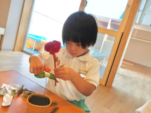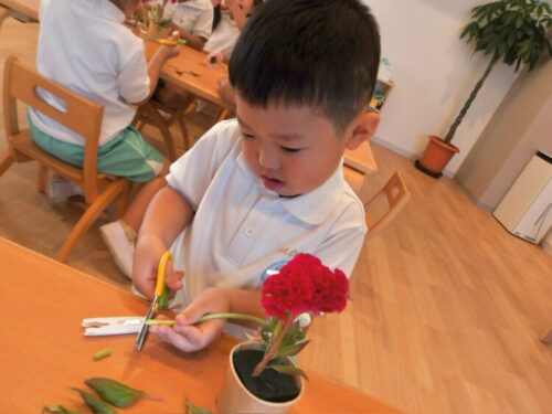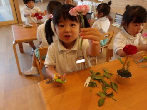 短く切ったお花を「これは、赤ちゃんの花🎶」長いお花は「これは、お母さんの花🌺」と言いながら長さで決めているお友達もいましたよ😊