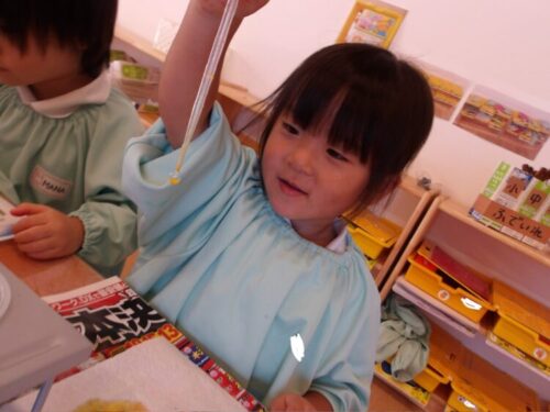子供達も初めてのことなのでドキドキしながら太い茎では硬い〜と言ってできない子がいると、年長さんが「やってあげるよっ!」と手伝ってくれる頼もしい姿を見せてくれました😄