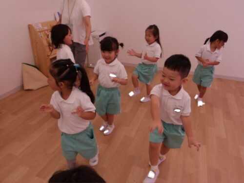 初めに取り組むリズム遊びでは、今日も楽しそうに音に合わせて動いたり、静止したり揺れたりする動きにチャレンジしました🎶