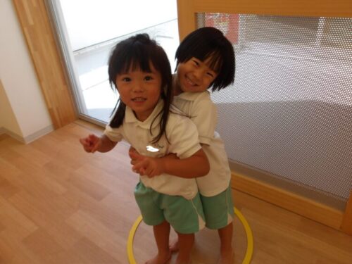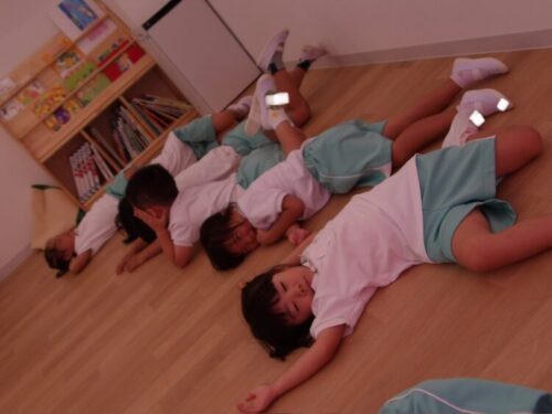 最後の体を休めるお休みタイムでは寝転がって静かに、、ピアノの音で起き上がる時は、笑って立ち上がっていました😄