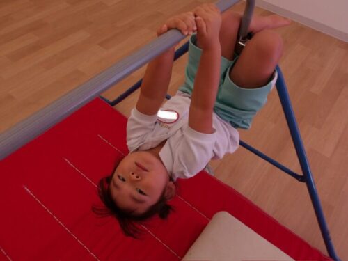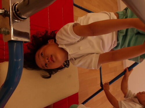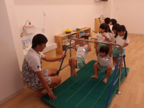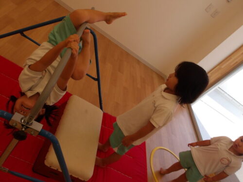 鉄棒では腕の力をつけるため今日はたくさんぶら下がりました!
