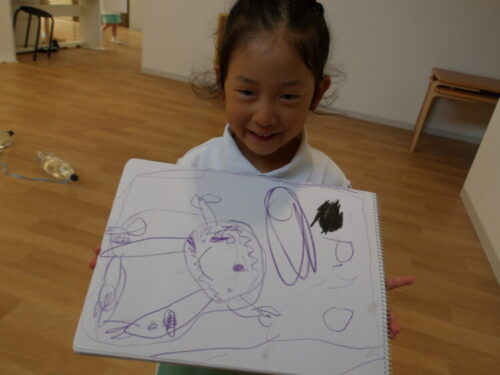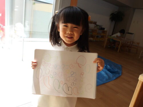 お絵描きをしていたお友達は「ハート書いたよ❣️自分を描いたよ🎶」と見せに来てくれましたよ😄