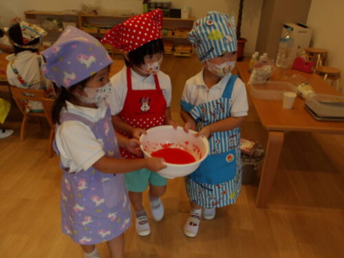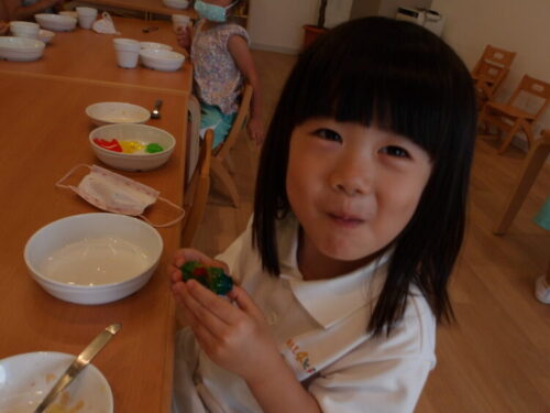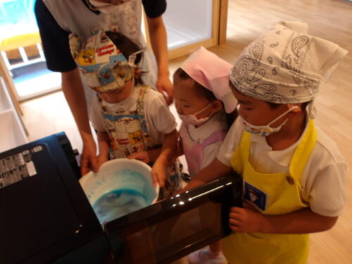 どの子も「おいしい〜❣️」と言いながら、電子レンジを使ったオリジナルグミクッキングを食べるところまで、思いっきり楽しむことが出来ました😊