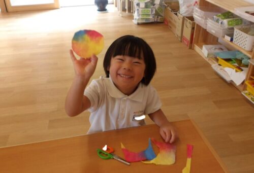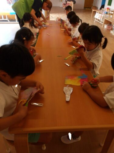 今日は前回染めた用紙を丸く切ってクラゲ作りをしました🪼