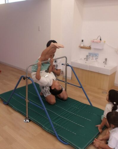 腕の力がつくと逆上がりもできるよ!と年長さんがお手本で披露してくれました👏🏻👏🏻