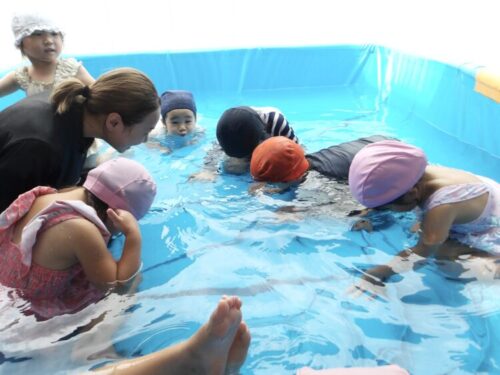 今日は顔を水につけました!できる子は5秒つけてみようと声をかけると年少さんも頑張って5秒間我慢してつけれた子がいてびっくり‼️😃😄