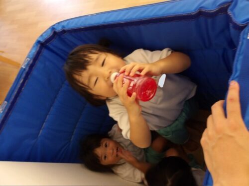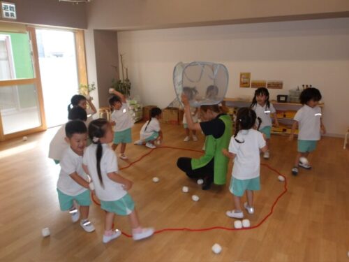 空き時間では玉入れや綱引きの集団遊びをして過ごしました。