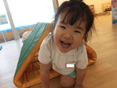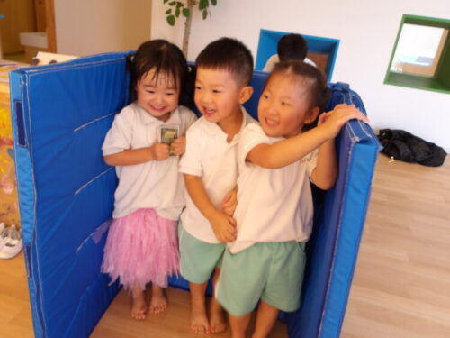 たくさん体を動かした後は、マットをトンネルやテント、お家に見立てて、ワイワイキャッキャ大騒ぎしながら遊びました😄