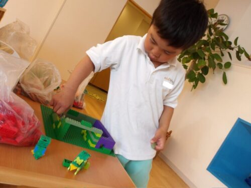 年長さんはLaQにハマっていてLaQで作った動物のお家をブロックで作ってましたよ😄
