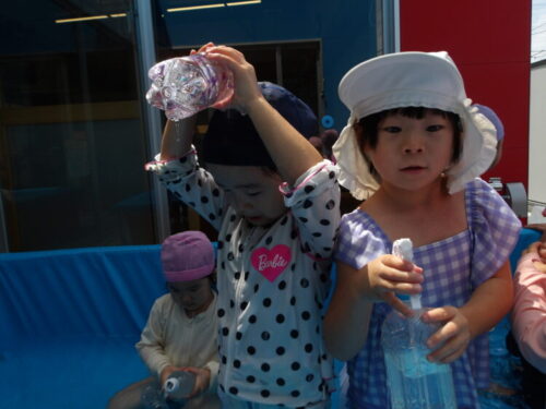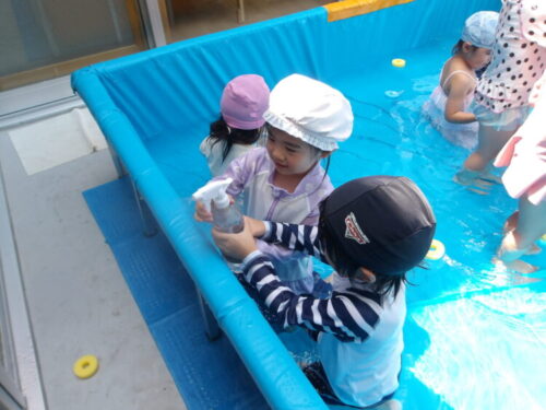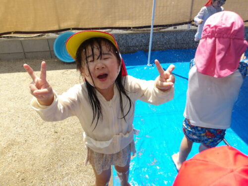 今日は園庭で、水遊びをやることになりました🎶