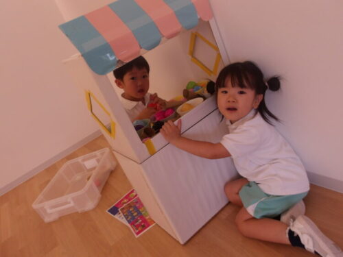 おままごとコーナーでは今日もアイス屋さんになり切って、お客さんは玩具のお金を持って並んでいました♪