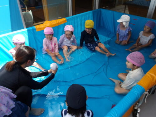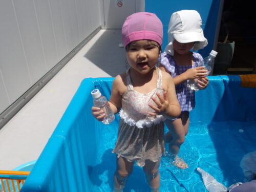 水遊びでは年長さんが前に出て準備体操をしてくれました🎶