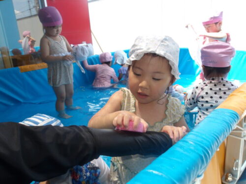 自分の水着を膨らませる子もいました😂