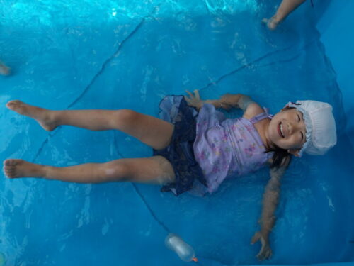 プールではズボンに空気が入って膨らませることを知り楽しんでいましたよ☺️