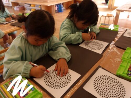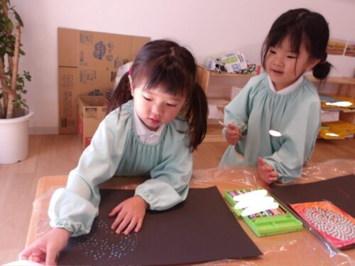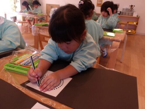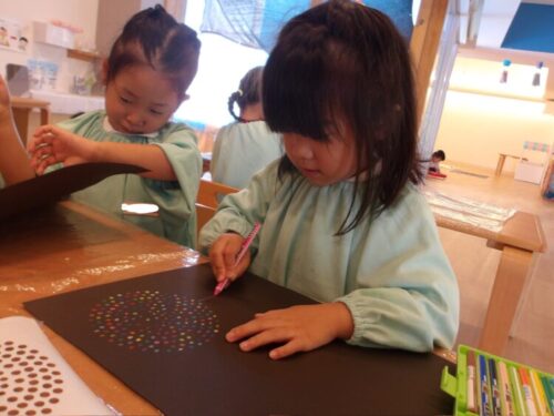 出来上がってからは周りに人や虫などを描いているお友達もいましたよ♪