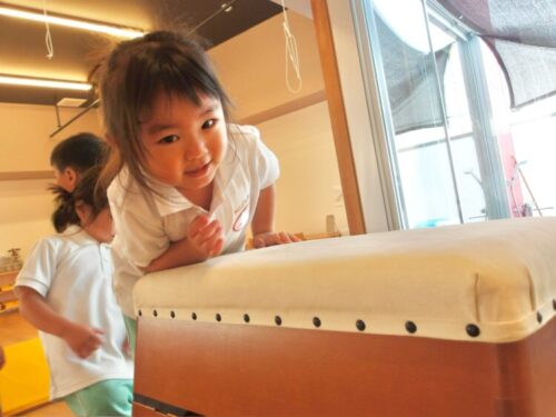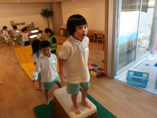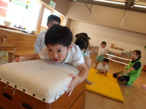 跳び箱は昨日より高くすると子供達も登るのに挑戦!