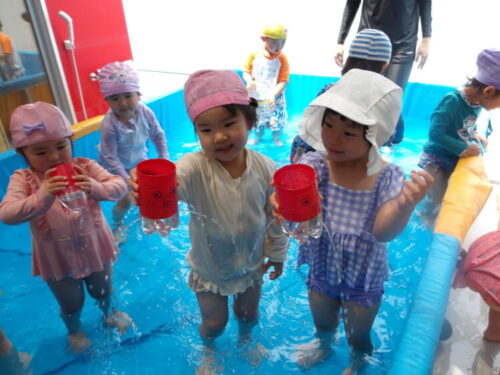 体に水が慣れてからは玩具を使って自由遊び🎵
