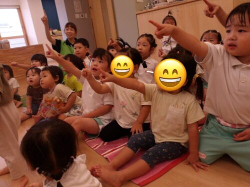 先生からの出し物ではクレヨンの色がなくなってしまうお話でみんなの魔法をもらって色を戻してあげようと、大きな声でえーい!と魔法をかけてくれました😄