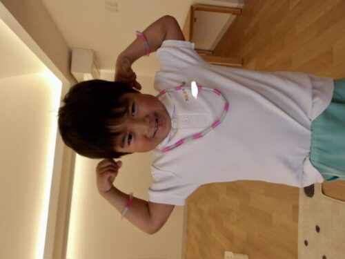 先生に結んでもらってからは嬉しそうに身につけて友達とごっこ遊びをして遊んでいました😄