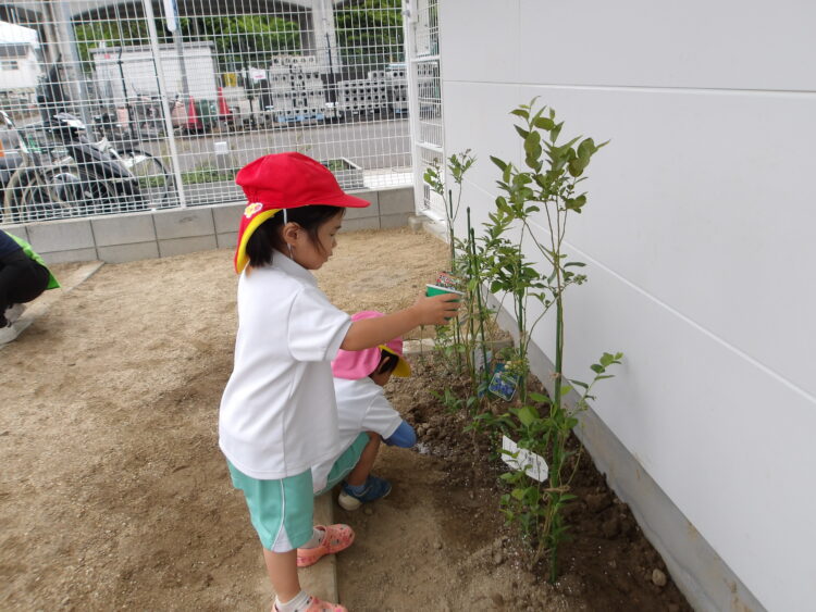 「おみずもあげたほうがいいんじゃない?」という声も上がりカップやバケツに水を汲みお世話をする姿もありました。