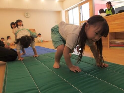 先生のお話も上手に聞けてお約束を守りながら今日はマット運動を行いました♪