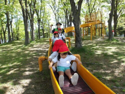 長い滑り台とブランコは子供達に大人気で何度も滑って遊びました😄