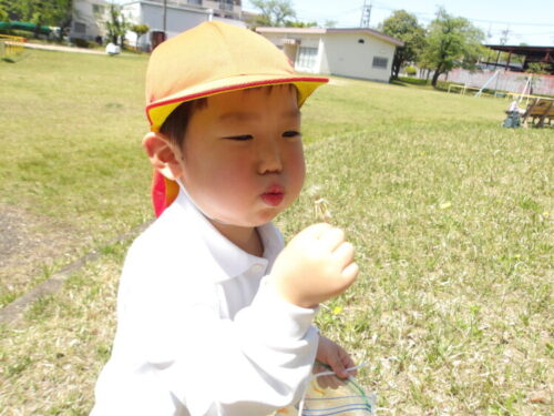 たんぽぽのワタを見つけると上手に息を吹きかけ飛ばしてましたよ😄