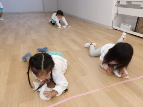 今日はお部屋の中で雑巾リレーをして遊びました😄