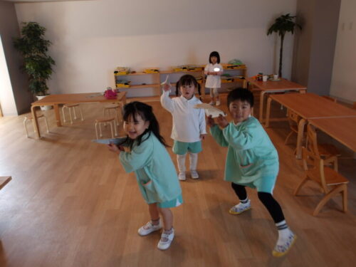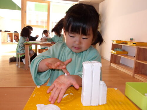 男の子では作り方の見本の本で覚えた形を、何度も自分で作るのに夢中です😊