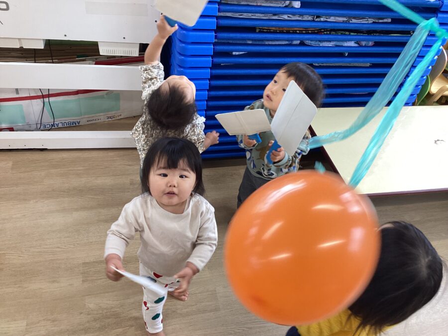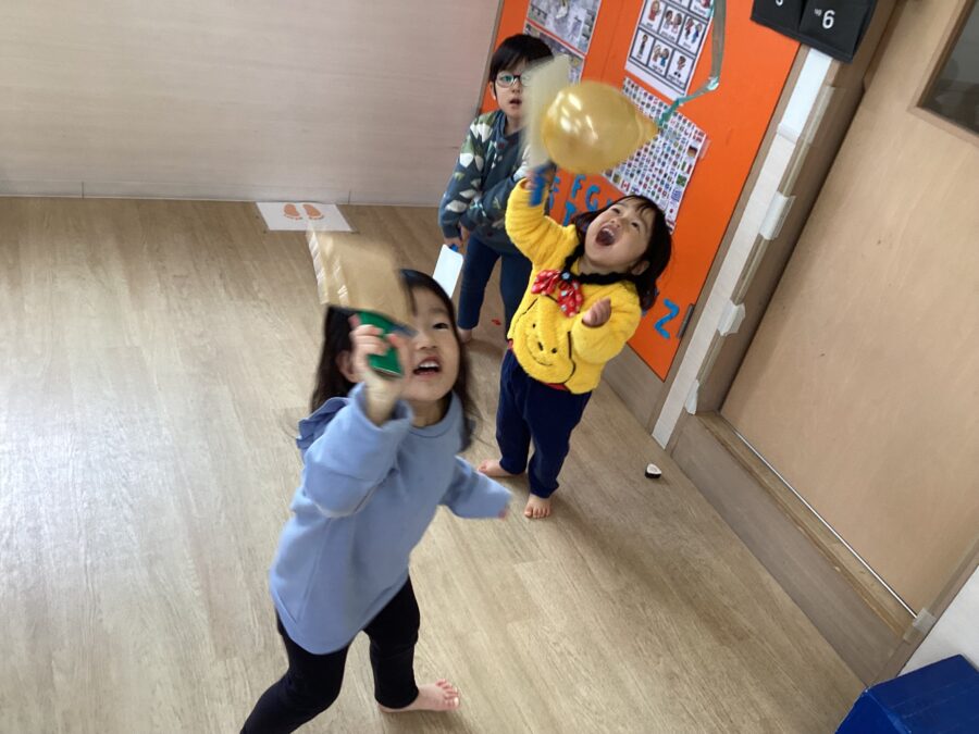 フワフワ浮かぶ風船に上手に当てていて、とっても面白そうでした![]()
