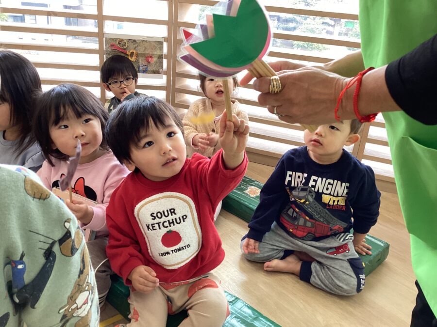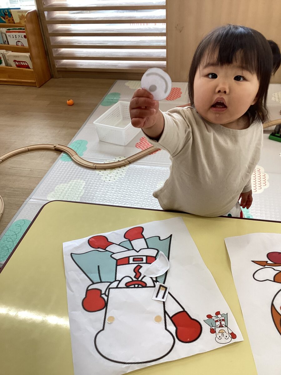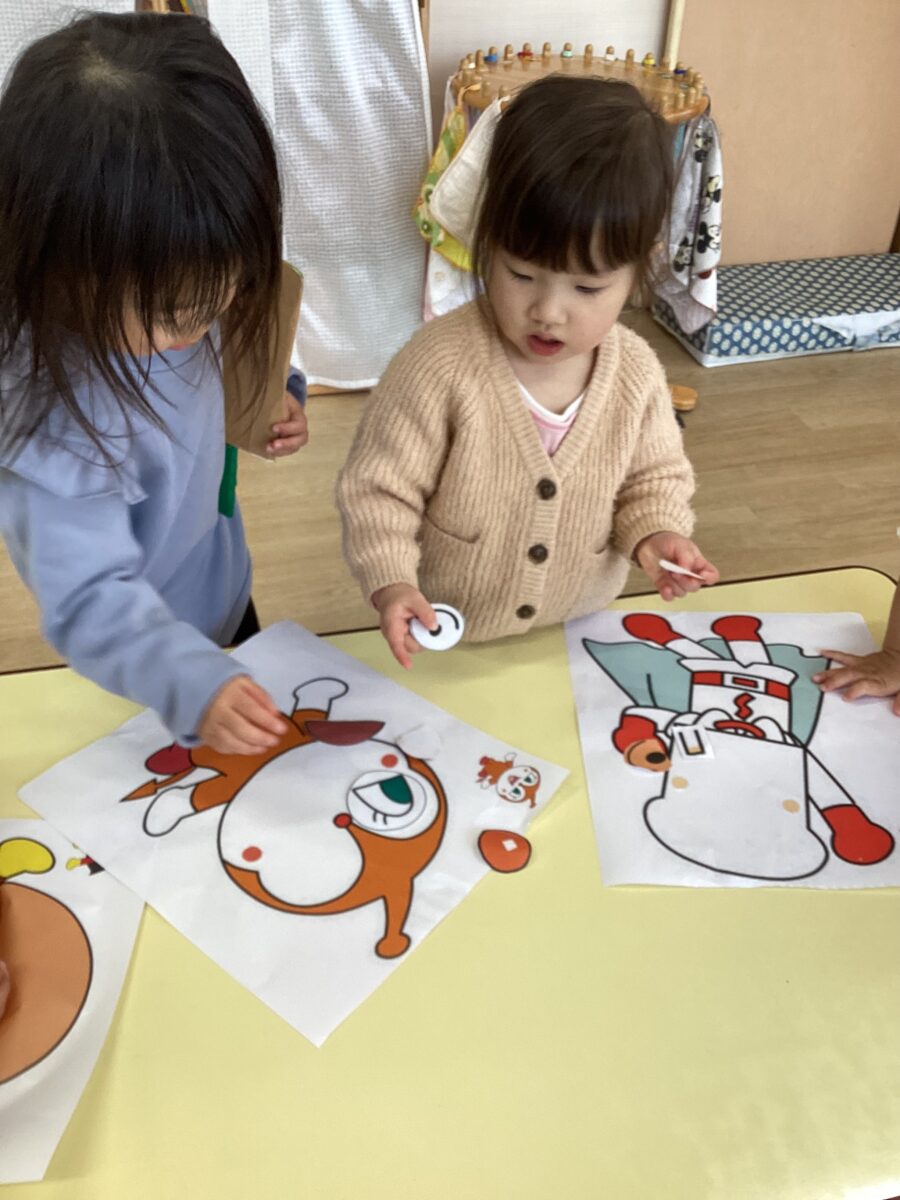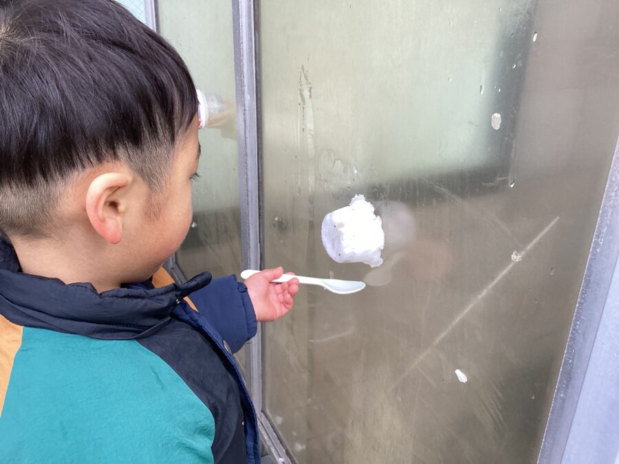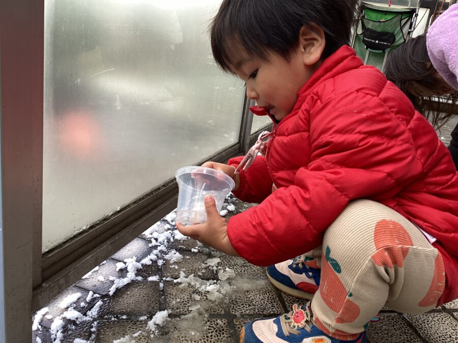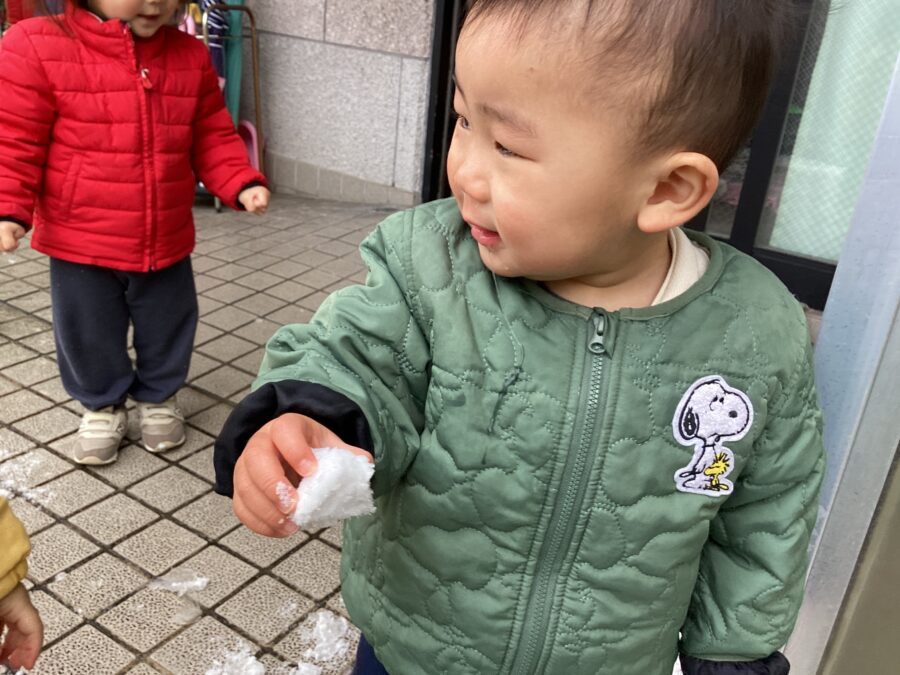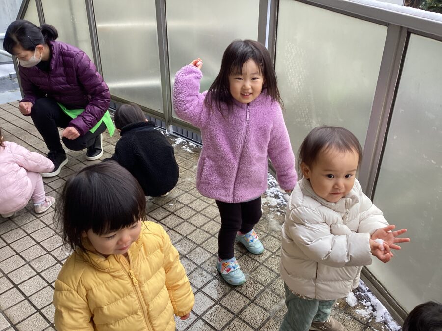 「雪が降ってるよ~」「さむかったねぇ」などのお話で盛り上がっていたお友だち!