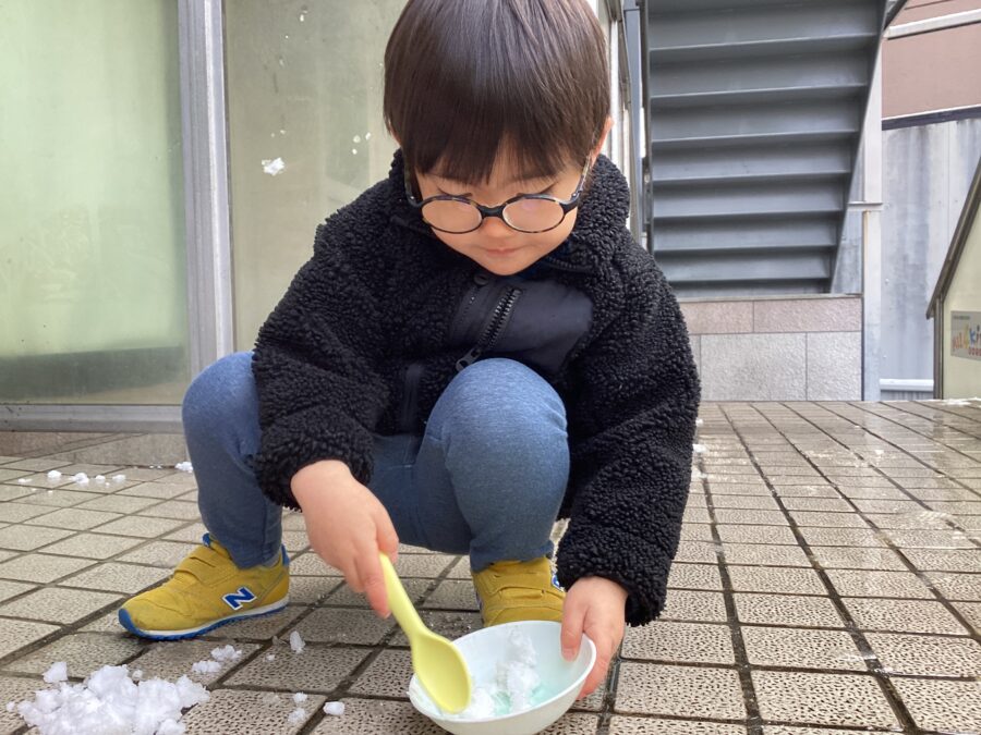 雪を集めて触ってみたり、「えいっ」と投げてみたり💕