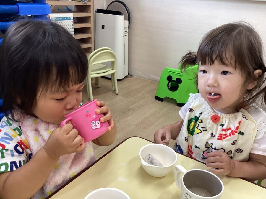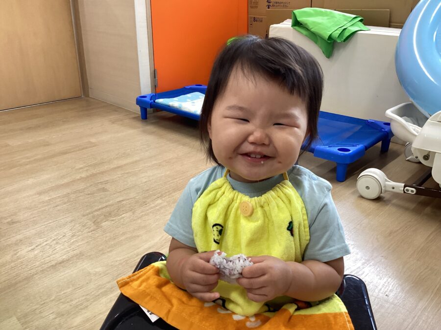 起きた後は美味しいおにぎりのおやつをもぐもぐ食べていましたよ🍙