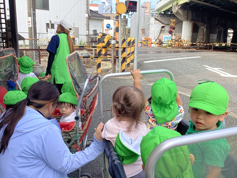 「JRかなぁ?貨物列車かなぁ?」「どっちからくるかなぁ?」とわくわくしながら待つ姿が見られました。