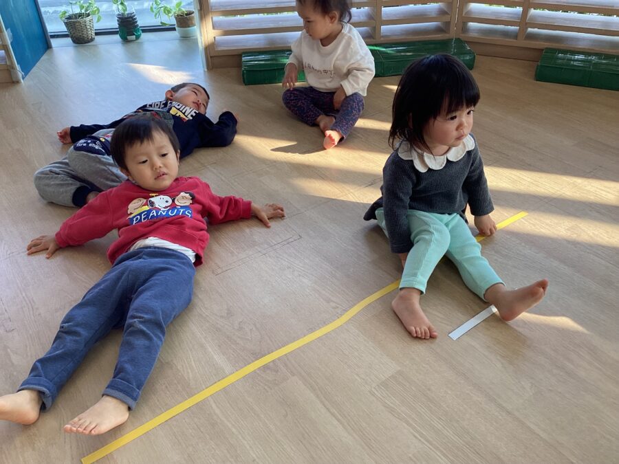 ゴローンと横になり、先生の合図を聞いて起き上がる時には「おはよ~う