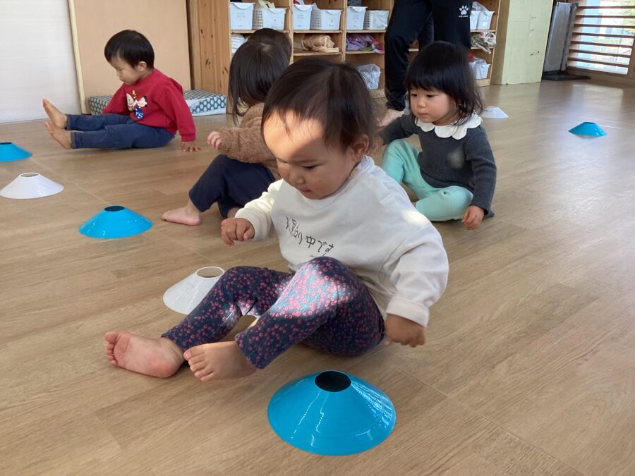 お尻で前進する動きは面白くて、コーンをタッチした後もお尻歩きで戻って来ていたお友だちでした![]()