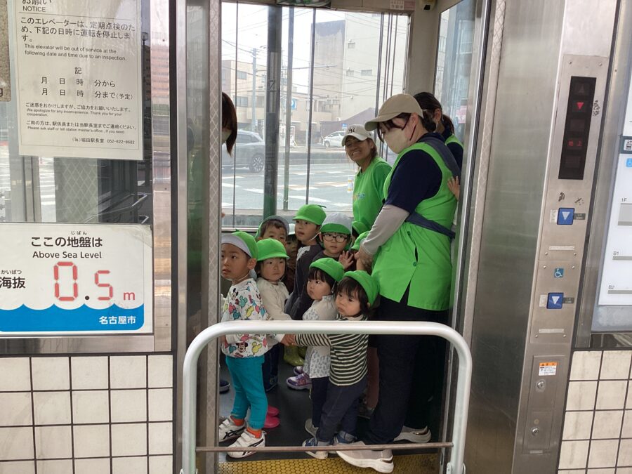 大きなエレベーターにみんなで乗って下に降りていくときはドキドキ・ワクワクでした