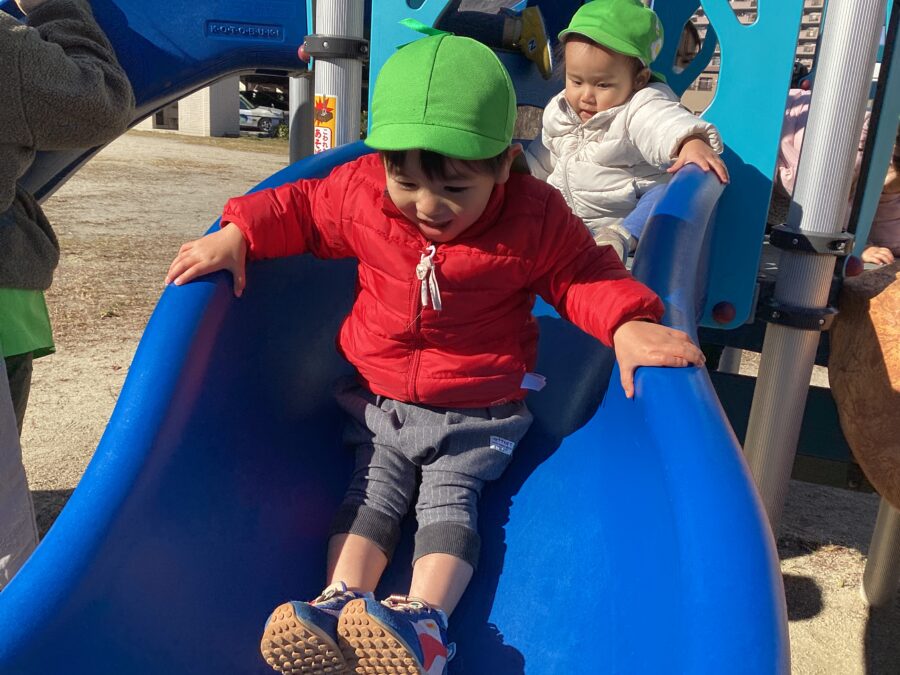 公園あそびでは、すべり台やブランコに順番こで楽しみました🎵