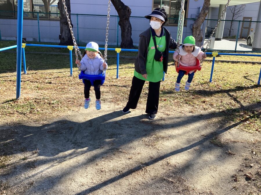 ブランコを待っている間は、保育者と「いーち・にー・さーん・・・」と一緒に数を数えていました✨
