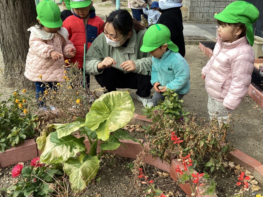 公園の遊具であそんだ後は、お花を観察したり虫のタマゴを探してみたり、