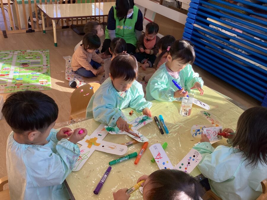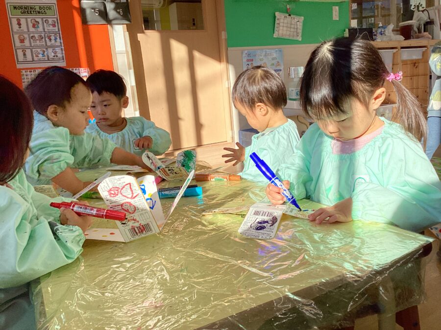 今日はペンで土台に好きな絵を思い思いに描いていました![]()
