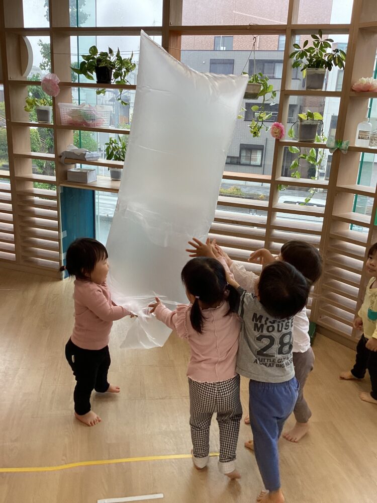 大きな袋の登場に「うわぁ〜!!」「なにこれ?」とみんな興味津々👀