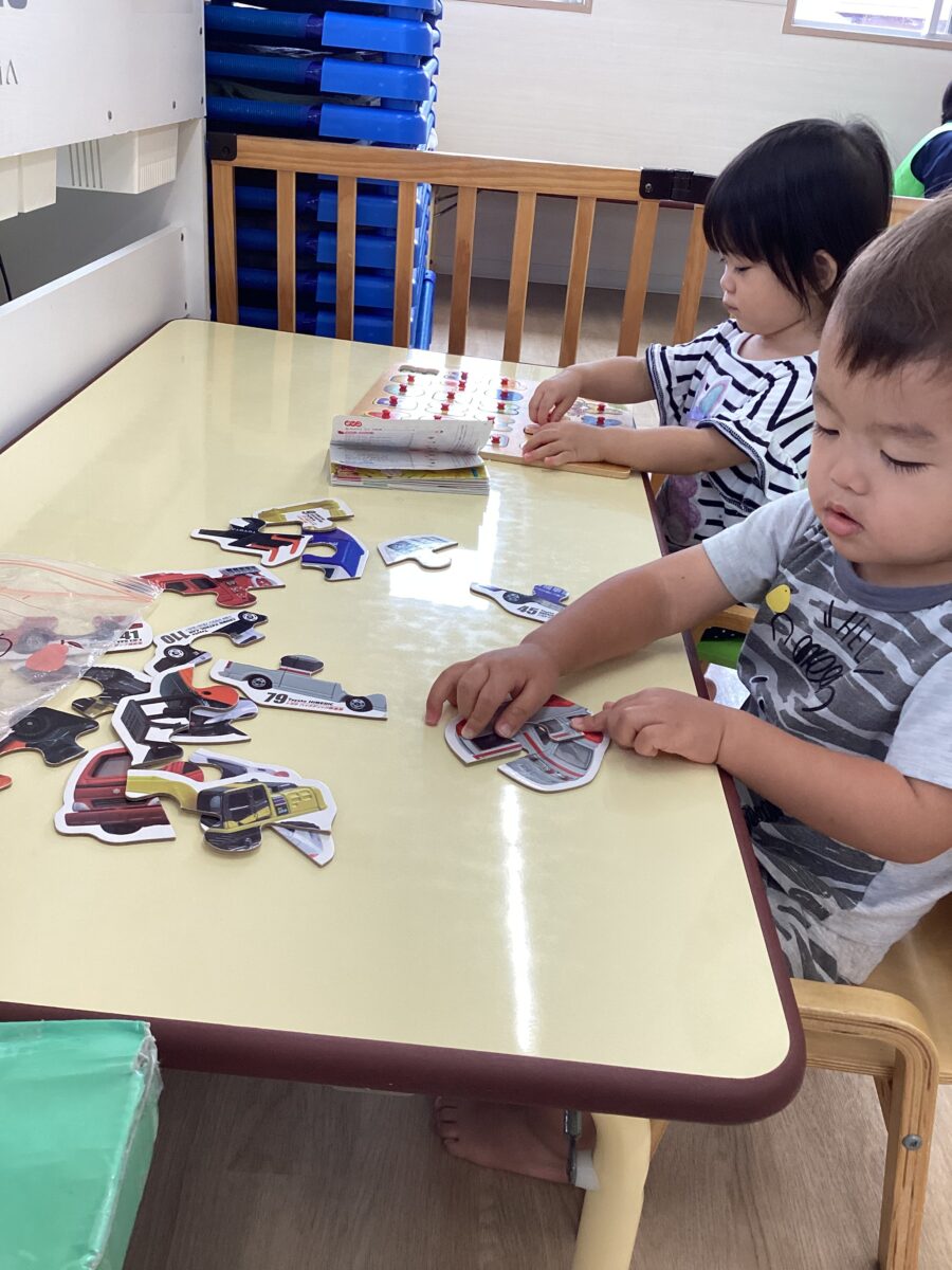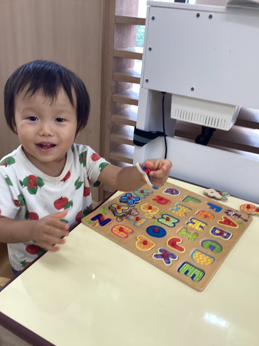 パズルでは「A」「G」などとアルファベット一つ一つの発音をし、嬉しそうに見せてくれながらはめていました👏