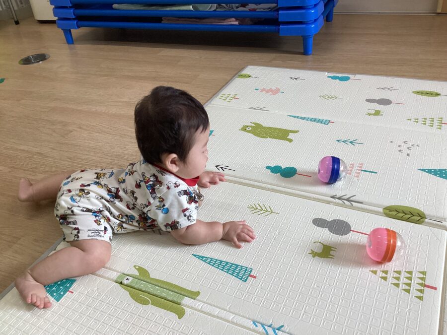 たんぽぽ組のお友だちは、おもちゃを目掛けてハイハイ🙌