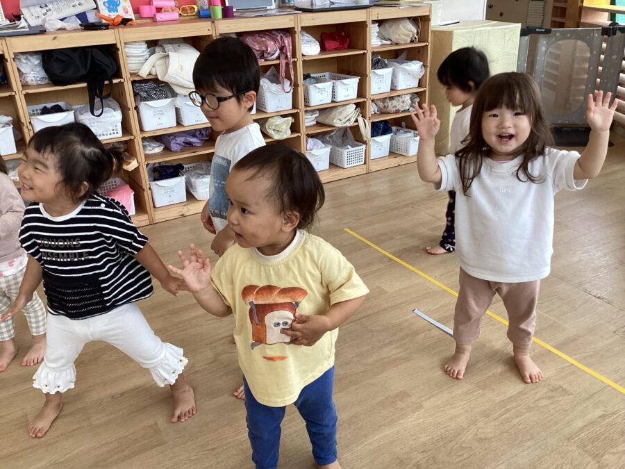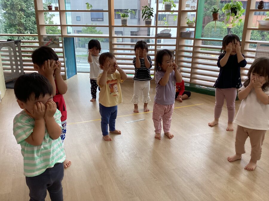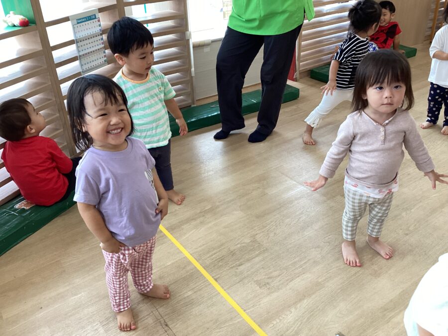 ピアノの音に合わせて、手拍子をしながら歩いたり、ピタっと止まったり、ジャンプをしながら手を叩いたり、揺れたりと、音の変化にしっかり気づいて、体を動かしていましたよ🎹