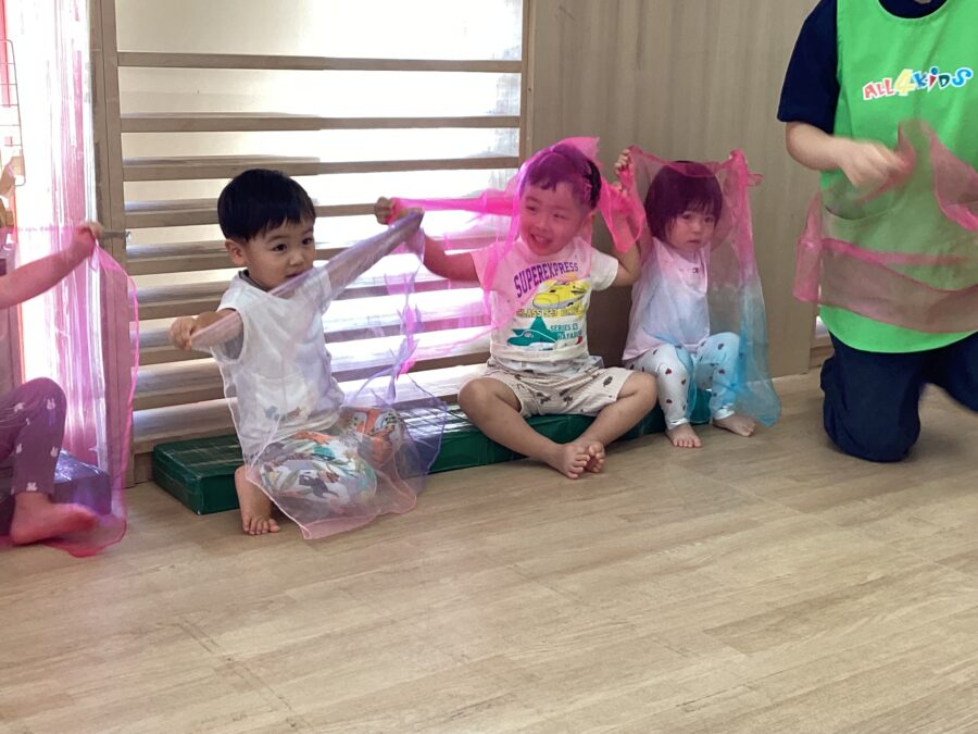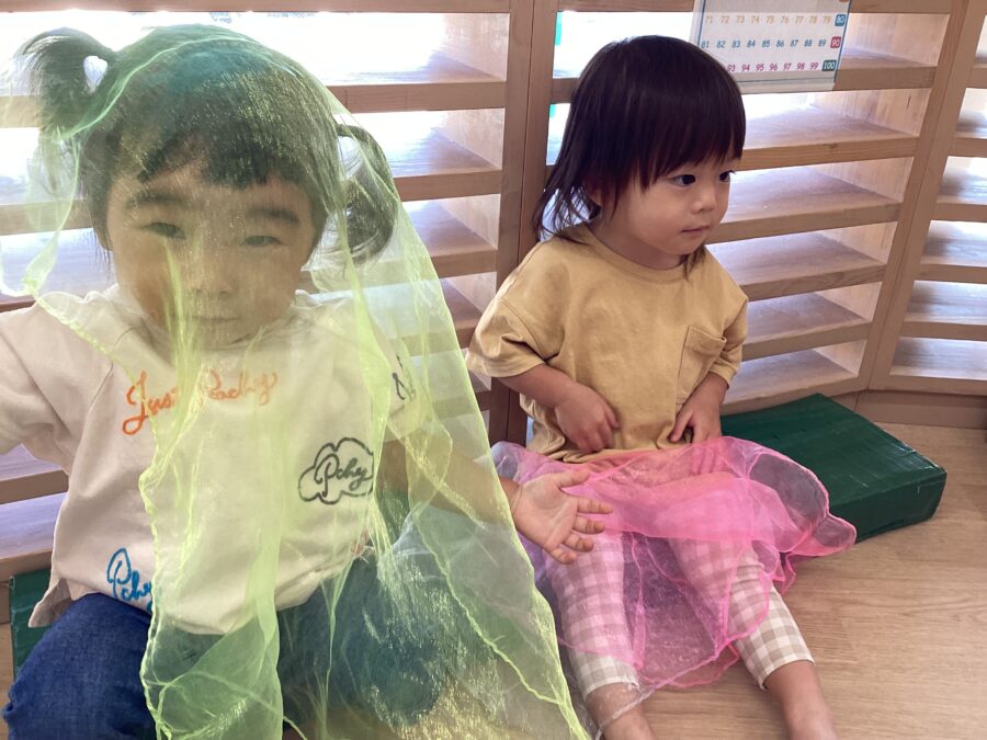 いない いない ばぁ!のようにスカーフを下ろして「おばけだぞ〜〜」と驚かして遊びました😄