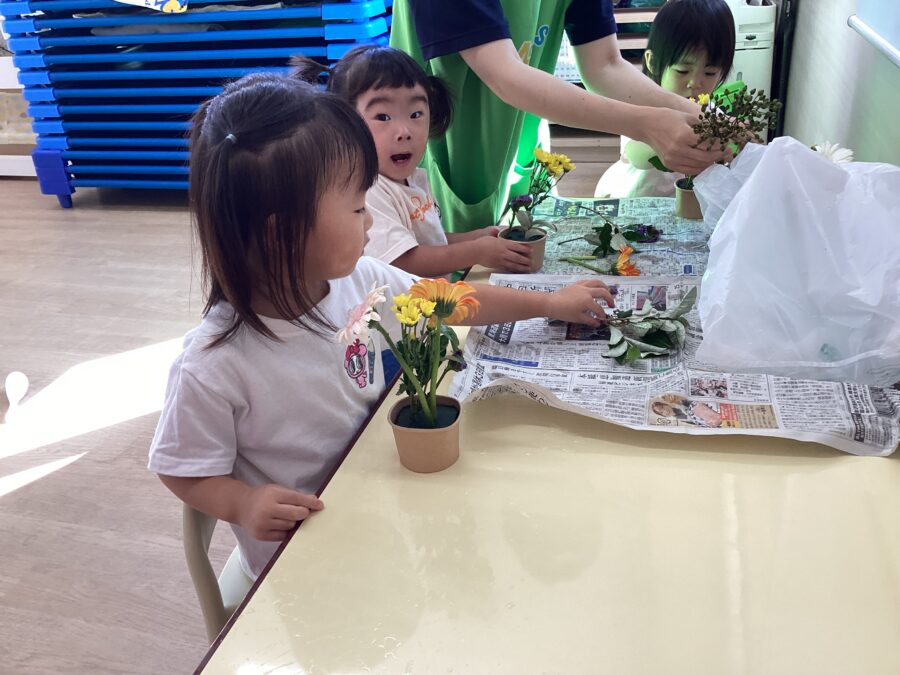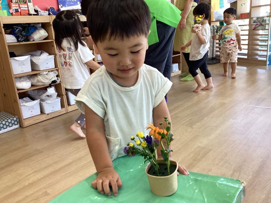 ガーベラ、リンドウ、小菊、野バラの実、スターチス、ロシアンオリーブの中から、好きなお花を嬉しそうに選んでいましたよ✨